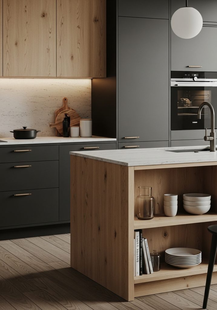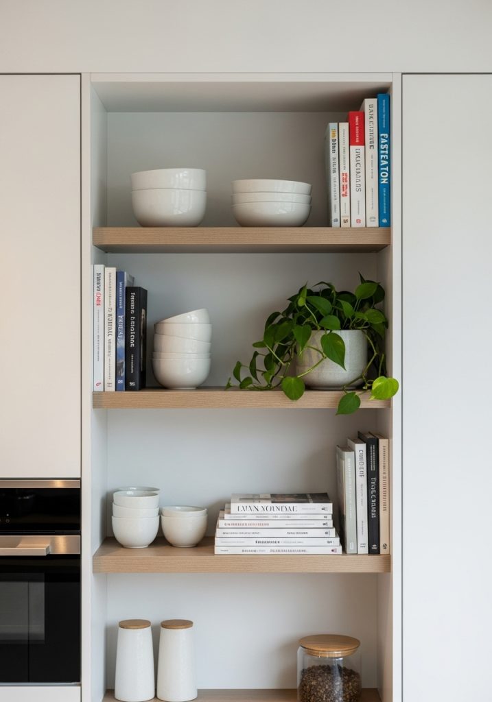 While minimalism often emphasizes hidden storage, strategically placed open shelving and display nooks can add warmth, personality, and a curated feel to a modern kitchen. It’s not about cluttering every wall; it’s about showcasing beautiful dishes, unique glassware, a collection of cookbooks, or even some potted herbs. This softens the austerity of sleek cabinetry and allows you to inject your personal style.