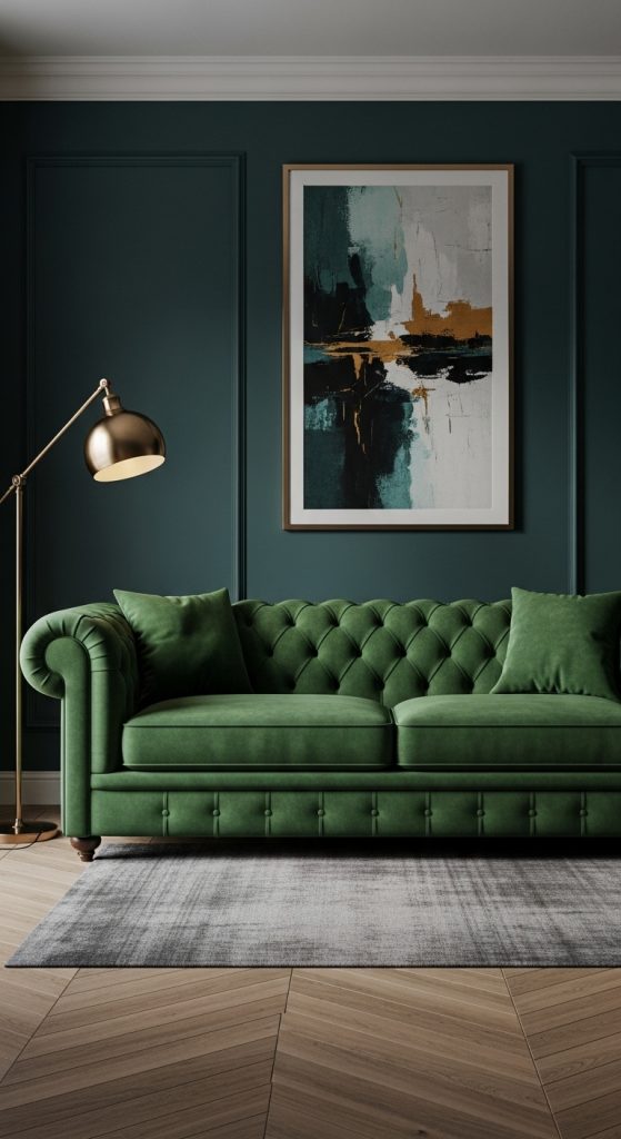 - Why it works: A saturated hue anchors the room and dictates palette choices effortlessly.