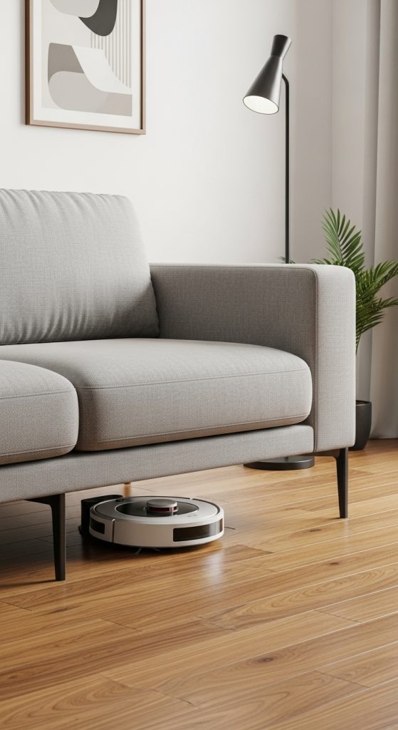- Why it works: Increased clearance adds airy visual space while aiding cleaning.