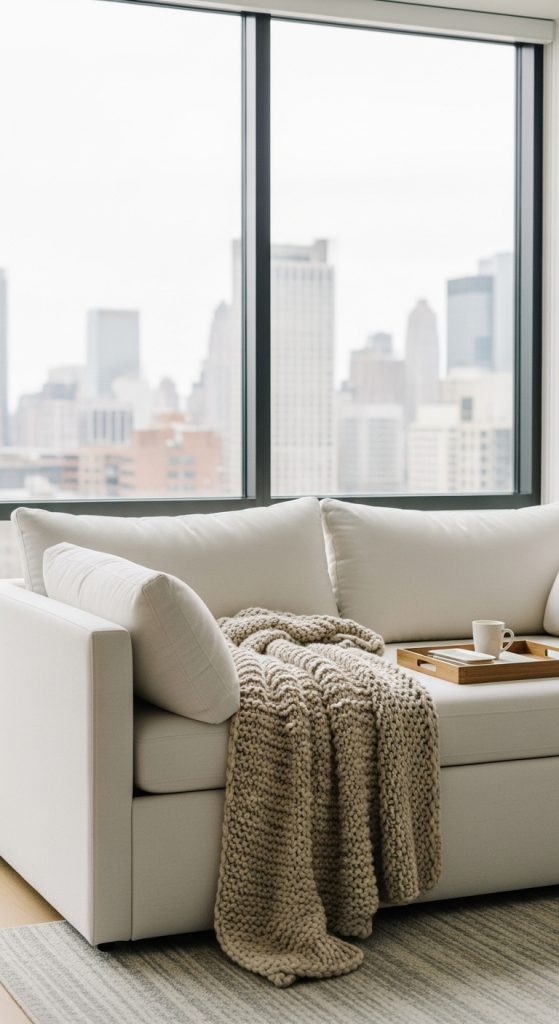 - Why it works: Neutral tones allow easy accessory updates, stretching your décor budget.