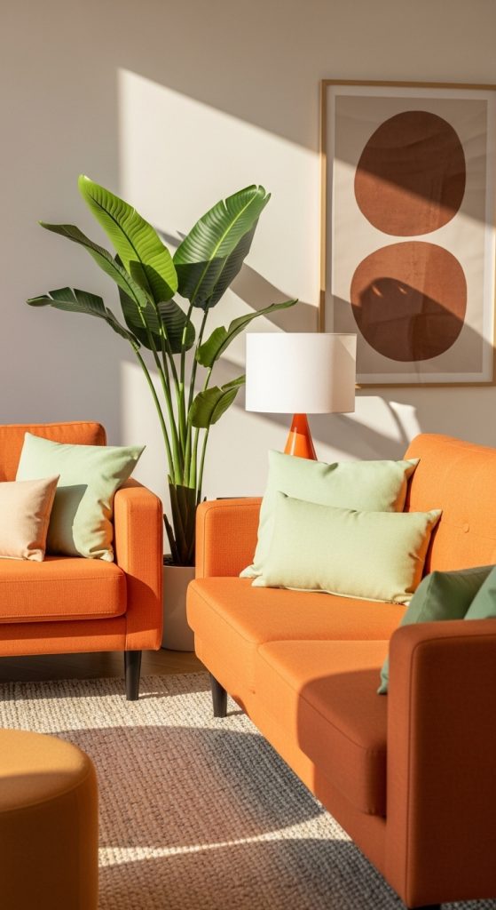 If you're not ready for a full room makeover, you can still embrace this palette by scattering colorful accent pieces throughout your space. Introduce terracotta ceramic pots for your houseplants; they serve as both practical containers and stunning decorative objects. On your walls, display a triptych of minimalist wall art in shades of sage green to add a touch of modern sophistication. You can also incorporate a decorative table lamp with a terracotta base or a mosaic pendant light that playfully includes both hues, creating a warm and inviting glow.