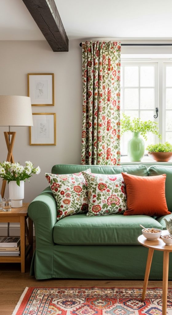 Incorporate small decorative accents that reflect the current season. In autumn, you might add a terracotta-colored pumpkin arrangement or a cozy plaid throw. In spring, fresh flowers in a sage green vase can brighten the space. This ability to easily swap out smaller elements ensures your living room always feels fresh, current, and perfectly in tune with the time of year.