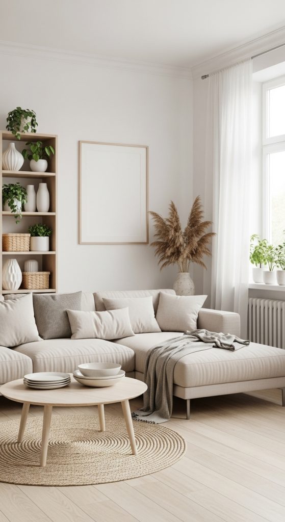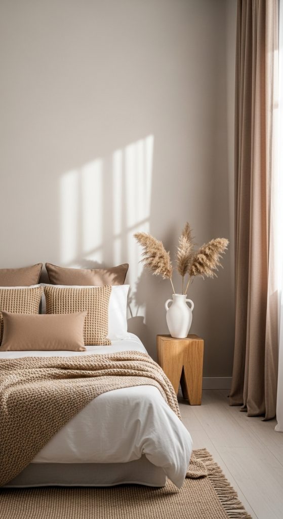 To effortlessly integrate brightened neutrals into your space, consider adding neutral-colored throw pillows to your sofa or bed. Soft, simple accent pillows can enhance the cozy feel of your living space while contributing to a fresh and inviting look.