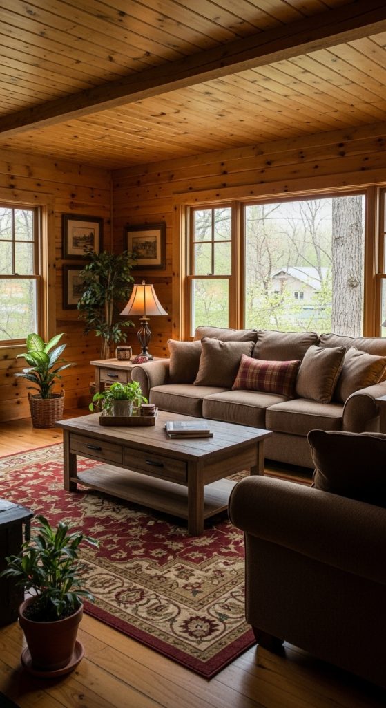 29 Enduring Earth Tone Palettes for a Refined and Timeless Living RoomLayer in tactile textiles, like a classic plaid throw blanket, to invite warmth and texture, perfect for snuggling on a cool evening. Additionally, a natural fiber area rug will reinforce that rustic charm while providing a soft surface, making it ideal for high-traffic zones. To round out the design, add industrial accents such as iron light fixtures to create a compelling contrast with the warmth of the rustic palette. This style truly comes alive in a dining area or kitchen, making every meal feel more intimate and homey.