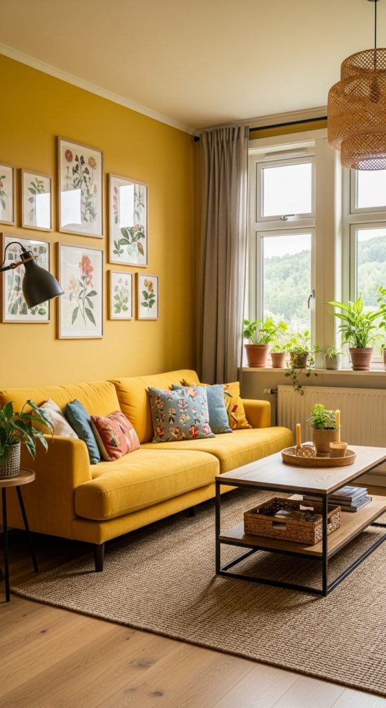 To incorporate these yellows, you can opt for softly painted walls or vibrant accent pieces. For example, a statement accent chair in a warm yellow can become a focal point, enhancing the welcoming ambiance while providing a comfortable spot for gathering. Layering different shades of yellow can also create a wonderfully cozy feeling.