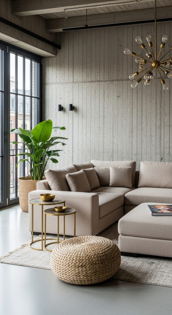 Another way to emphasize this palette is by using a concrete planter. A large, modern decorative pot not only ties into the industrial vibe but also serves as the perfect home for your favorite houseplants. Its sturdy construction and clean lines can help create the serene, contemporary environment you’re aiming for.
