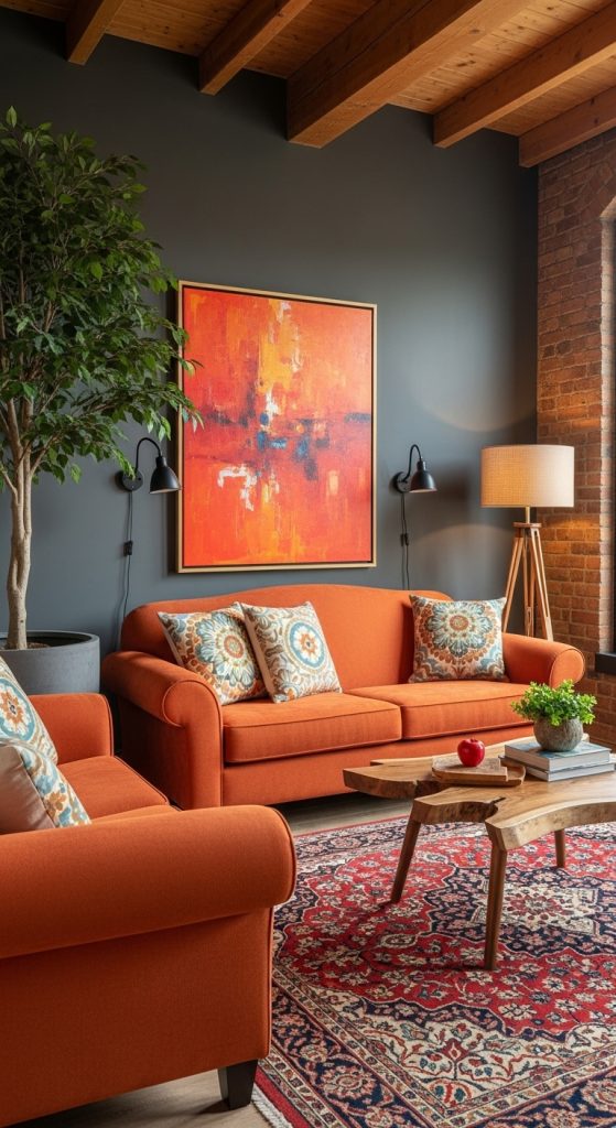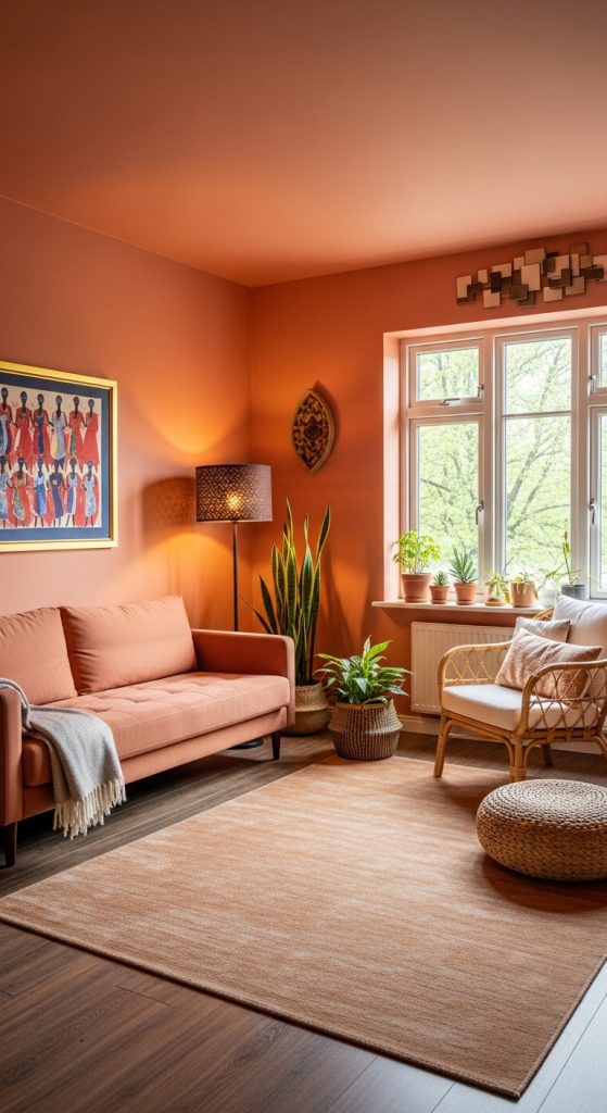 Terracotta infuses a room with warmth and a touch of history. This earthy, orange-toned shade connects seamlessly with natural materials, making it a fantastic choice for a cozy living environment. When combined with cream or soft brown, terracotta creates a welcoming space that feels grounded, stable, and deeply inviting.