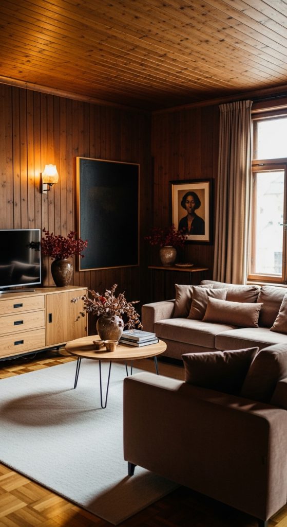 31 Wooden Decor Ideas for a Flawless Nordic Living RoomConsider painting an accent wall in a deep chocolate brown. An environmentally-friendly paint with excellent coverage will create a stunning, warm backdrop for your decor. Balance the richness of this hue with lighter shades in your furniture, textiles, and accessories.