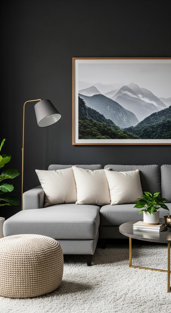 Layering textures is essential to keep the space from feeling too stark. Adding a cozy charcoal gray throw blanket can bring immediate warmth to a couch or armchair, making it perfect for those chilly evenings.