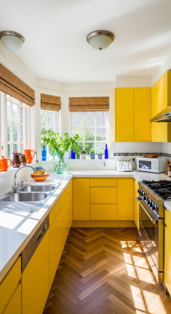 Balance the brightness of yellow with dark wood furniture for a grounded, sophisticated look. Maximizing natural light will amplify the warmth of this palette, making the space feel even more inviting. You can also add some indoor potted plants for a fresh touch that beautifully complements the yellow tones, improving air quality and bringing life into the room.