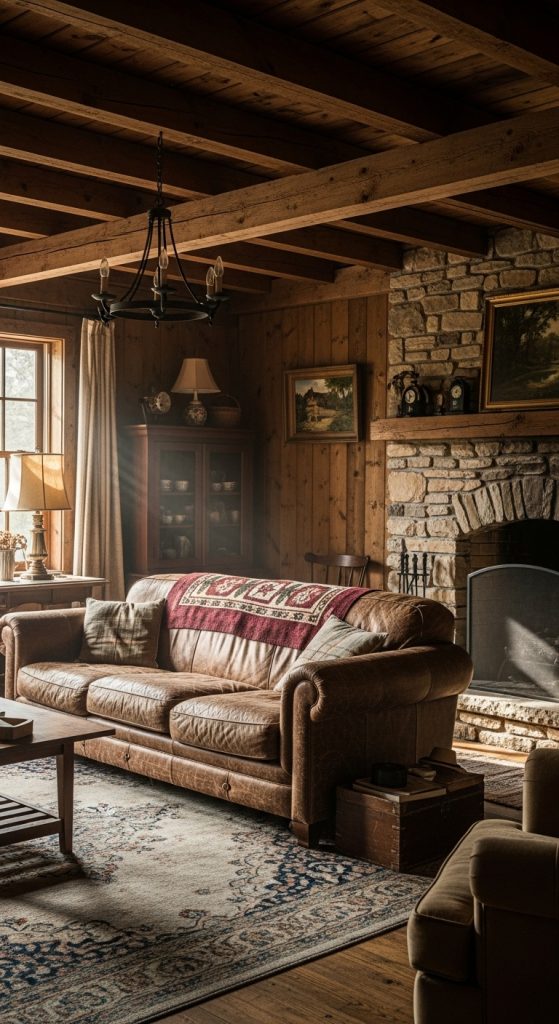 Choose darker leathers like black or mahogany with visible stitching and pair it with metal accents. Add a vintage floor lamp and boom: industrial perfection.