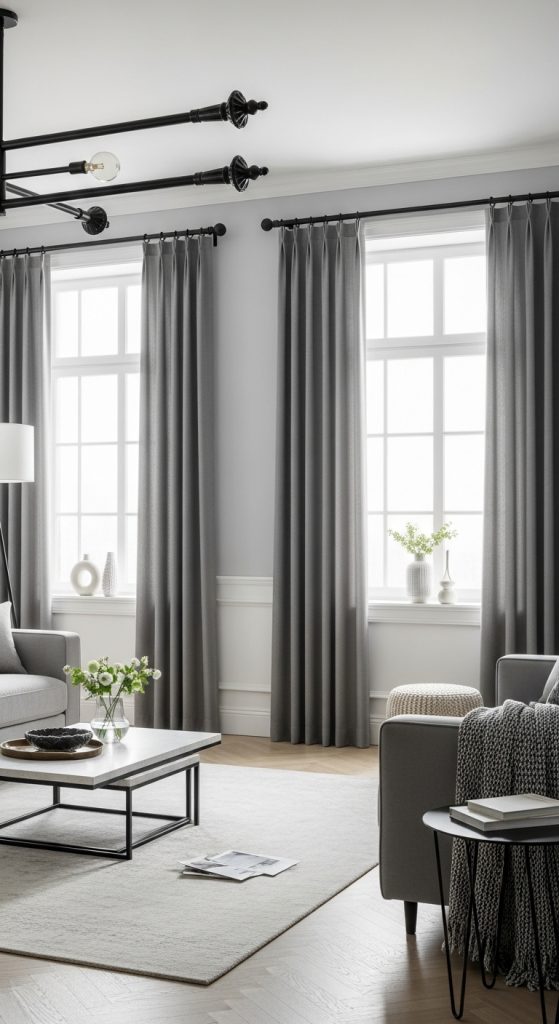 23 Gray Living Room Ideas with Curtains