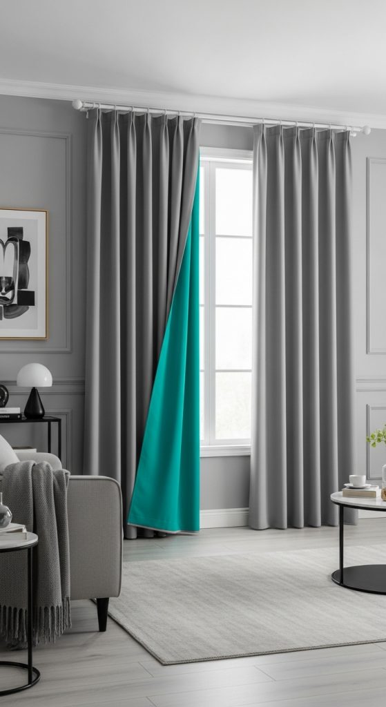 16. Try Gray Curtains with Colored Lining