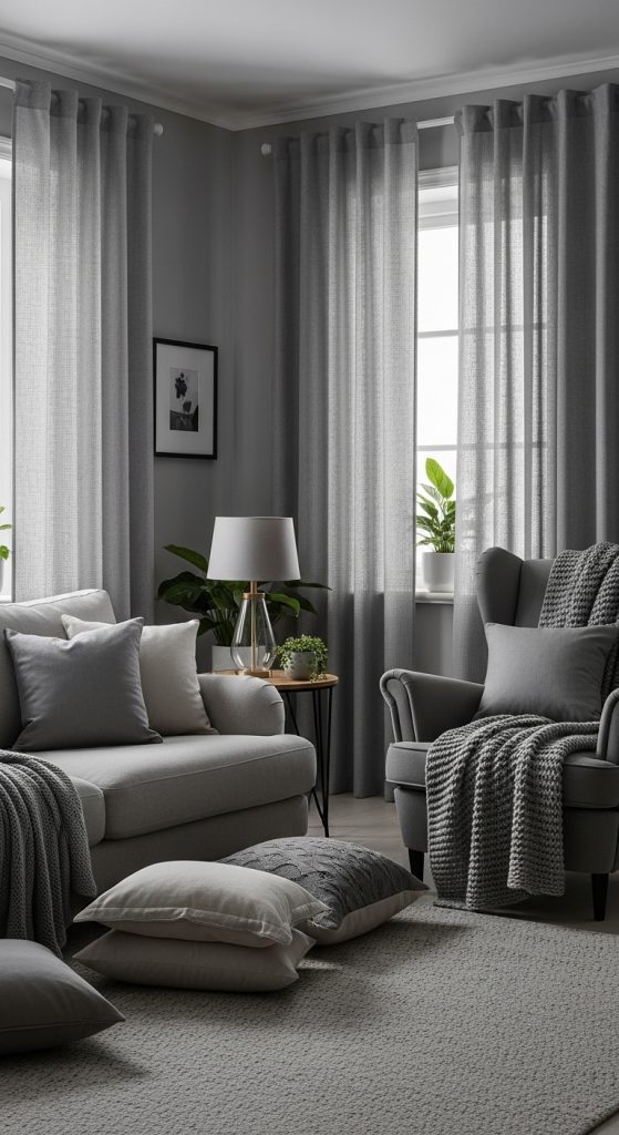 9. Textured Gray Curtains for Cozy Vibes