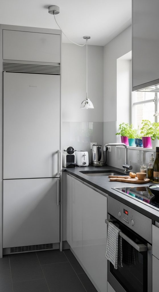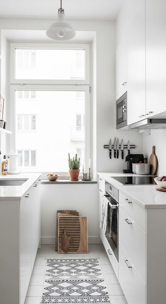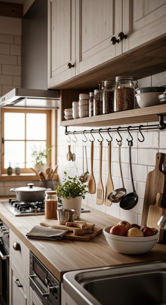 Less is more in a small kitchen. A few carefully chosen pieces = style without the chaos.