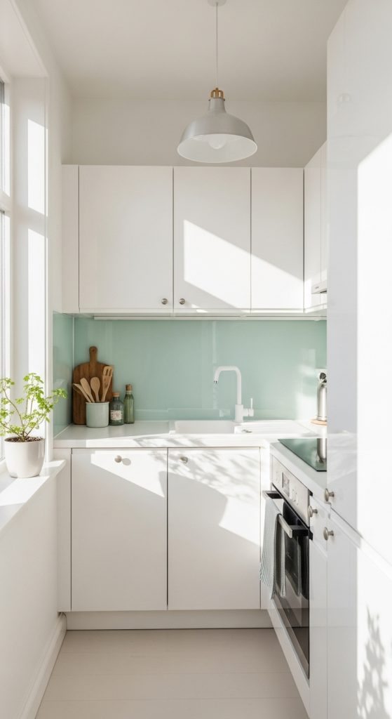 Light colors open up the space-yes, it's a design cliché, but it works. White, light grey, soft mint-they all reflect light and make your space look less "storage closet" and more "chic bistro."