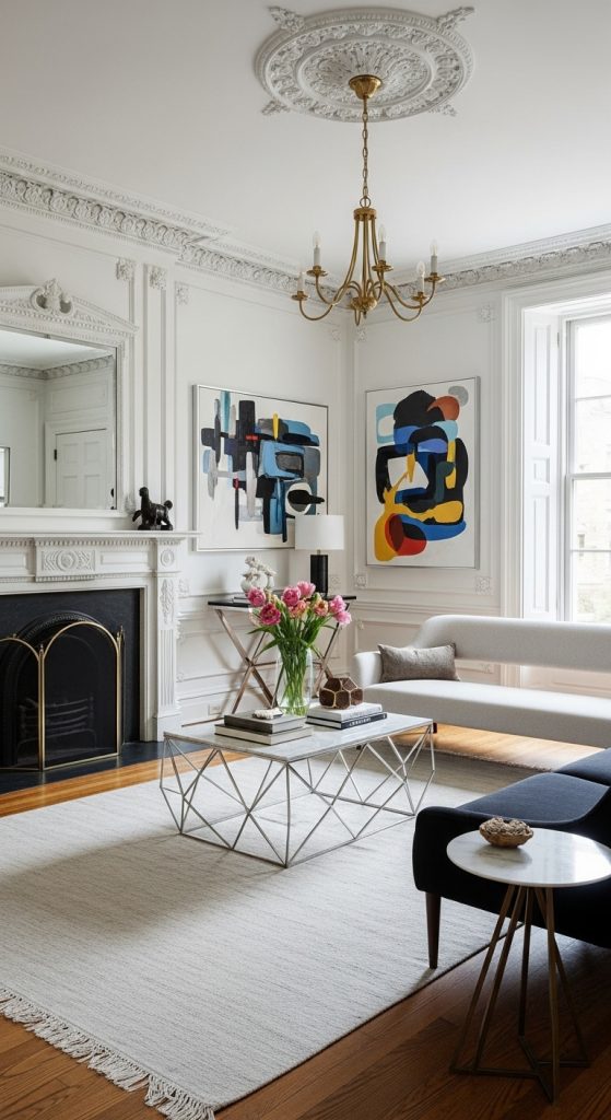 If you have a home with traditional details like crown molding or an ornate fireplace, create a stunning contrast by filling it with modern furniture. The juxtaposition of sleek, minimalist pieces against historic architecture is a hallmark of timeless design.