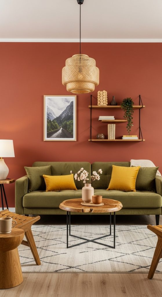 While neutrals are a modern staple, don't be afraid of color. Earthy tones like terracotta, olive green, and deep burgundy add warmth and sophistication. Use them on an accent wall, a velvet sofa, or through decorative accessories for a grounded yet colorful feel.