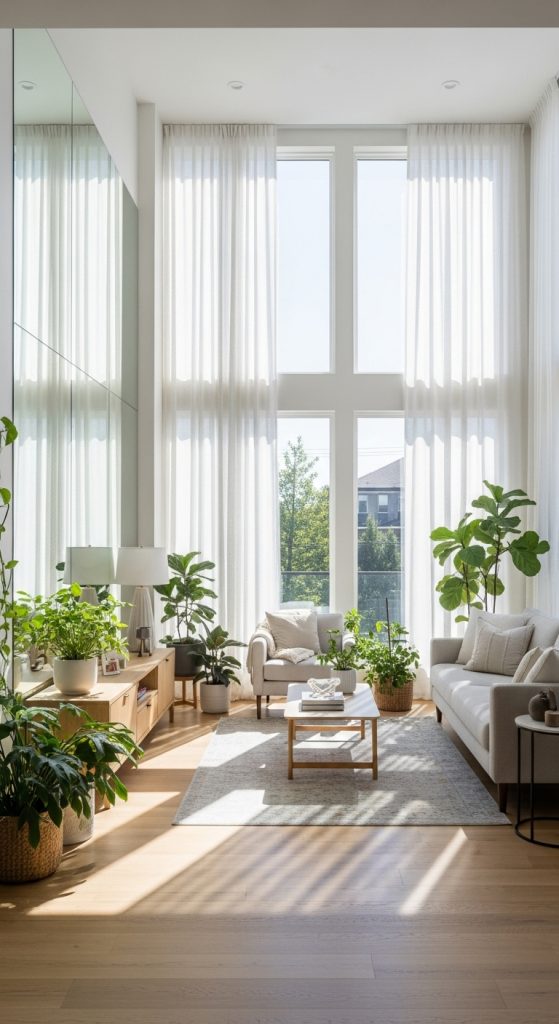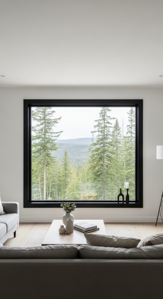 If you have large windows, make the view the centerpiece. Use high-contrast trim (like black or dark gray) to frame the scenery like a living work of art. Arrange furniture to face the outdoors and keep window treatments minimal to maximize natural light and the connection to nature.
